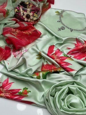 Shamoze Silk Fancy Neck 3PC Digital Print Dress