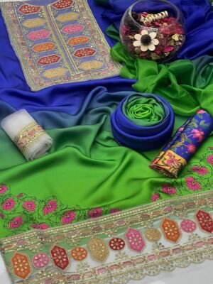 Shamoze Silk Tye ‘N’ Dye 3PC Dress with Zarri Work