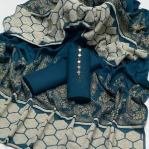 Experience the perfect blend of elegance and comfort with this Dhanak 3-piece dress set. The shirt and trouser are crafted from Dhanak dyed fabric, offering a rich, vibrant look with a smooth finish. Completing the ensemble is a jacquard Barosha acrylic Pashmina shawl with a velvet touch, adding warmth, luxury, and sophistication. Ideal for festive occasions, family gatherings, or stylish day-to-day wear