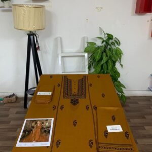 The 2-piece set includes an embroidered shirt with a plain trouser, giving a balanced, elegant appearance that suits all ages. With a cutting of 5.25 meters, the suit offers ample fabric for a perfect tailored fit. Whether you opt for a straight style, A-line kurti, or long shirt, this dress ensures effortless sophistication.