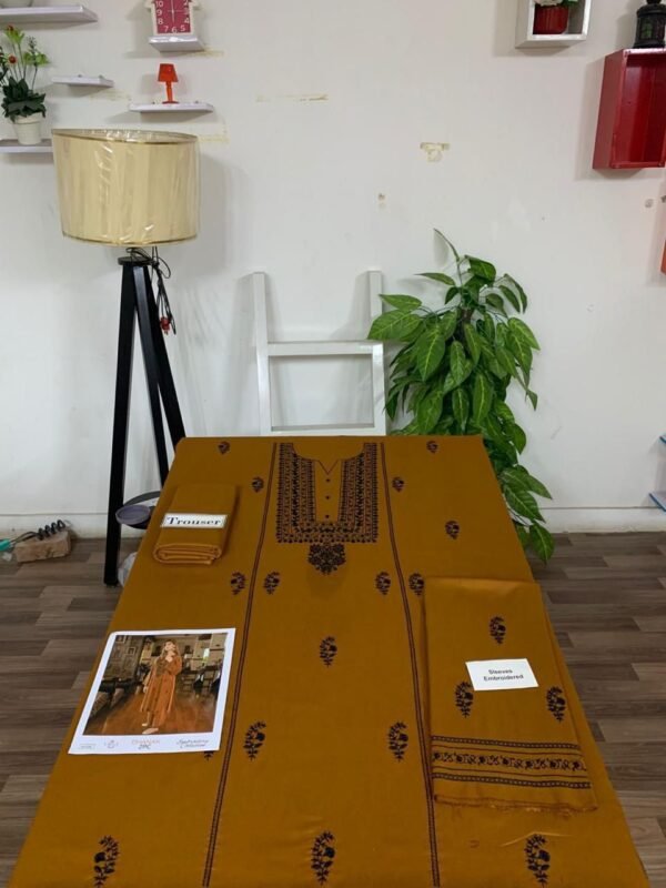 This stunning ensemble features intricately embroidered details that reflect timeless craftsmanship and refined artistry. The front embroidery, gala embroidery, bazu embroidery, and daman embroidery come together to create a rich, luxurious look that elevates your winter wardrobe. Every stitch adds depth and beauty to the design, making it ideal for casual wear, winter gatherings, and seasonal events.