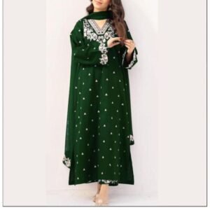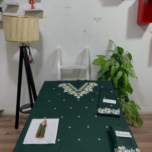 This stunning ensemble features intricately embroidered details that reflect timeless craftsmanship and refined artistry. The front embroidery, gala embroidery, bazu embroidery, and daman embroidery come together to create a rich, luxurious look that elevates your winter wardrobe. Every stitch adds depth and beauty to the design, making it ideal for casual wear, winter gatherings, and seasonal events.