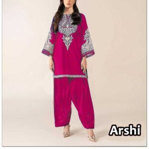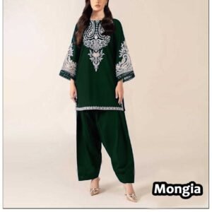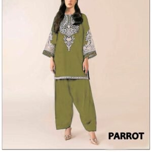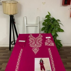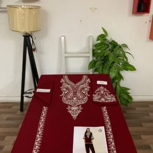 The 2-piece set includes an embroidered shirt with a plain trouser, giving a balanced, elegant appearance that suits all ages. With a cutting of 5.25 meters, the suit offers ample fabric for a perfect tailored fit. Whether you opt for a straight style, A-line kurti, or long shirt, this dress ensures effortless sophistication.