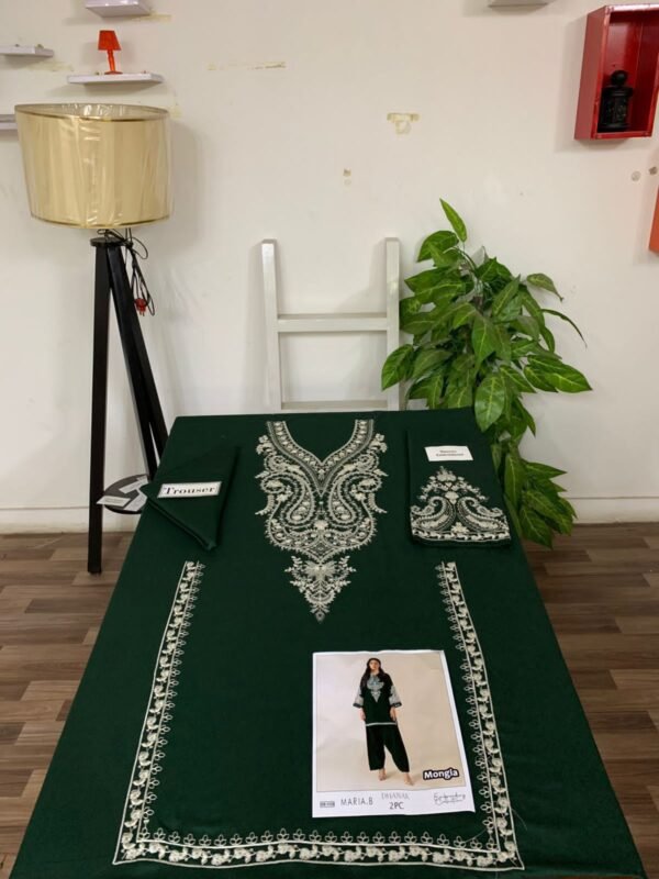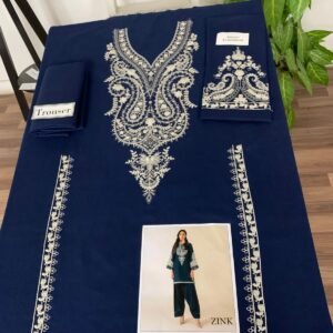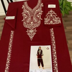 This stunning ensemble features intricately embroidered details that reflect timeless craftsmanship and refined artistry. The front embroidery, gala embroidery, bazu embroidery, and daman embroidery come together to create a rich, luxurious look that elevates your winter wardrobe. Every stitch adds depth and beauty to the design, making it ideal for casual wear, winter gatherings, and seasonal events.