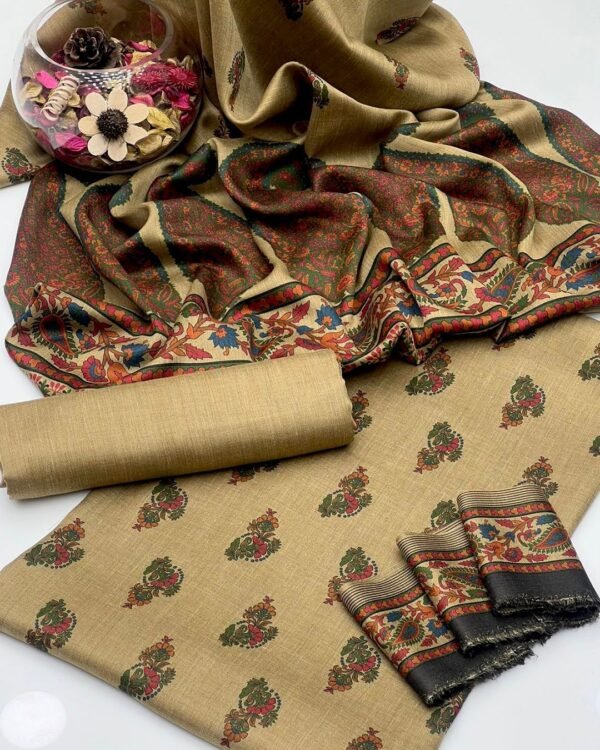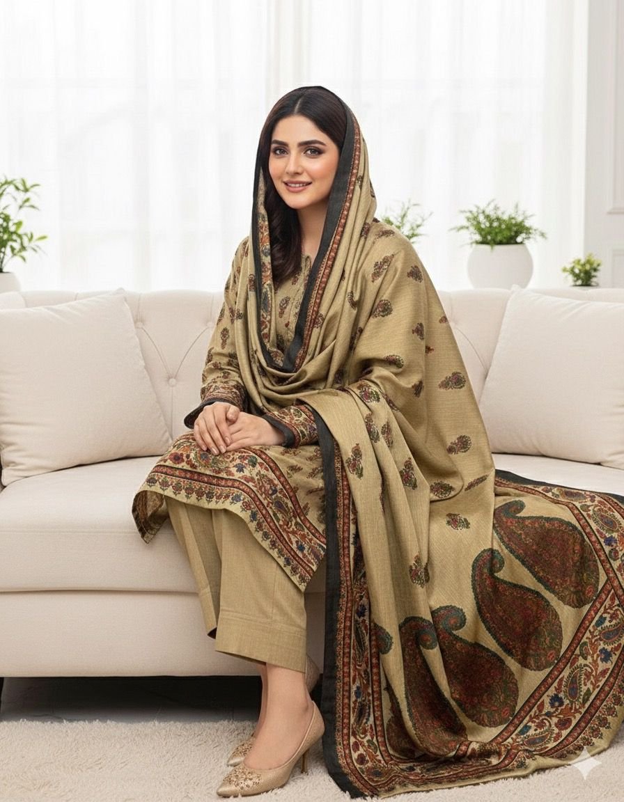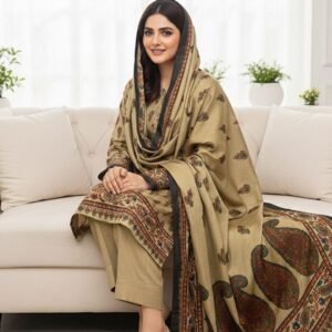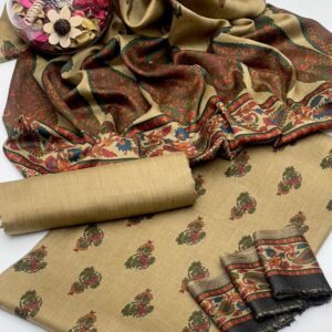 This 3-piece collection is ideal for formal gatherings, festive occasions, or elegant winter wear, providing rich texture, premium craftsmanship, and versatile styling. Experience the warmth and sophistication of authentic Kashmiri wool, paired with the timeless appeal of قلم کار artistry, in one complete ensemble that exudes luxury and style.