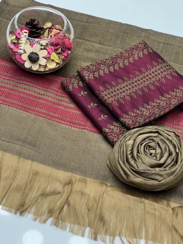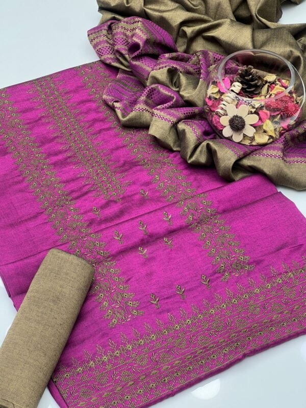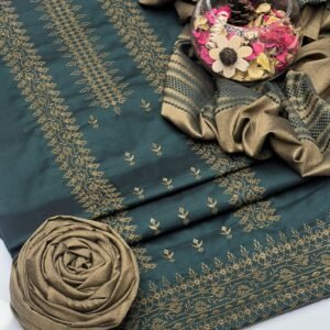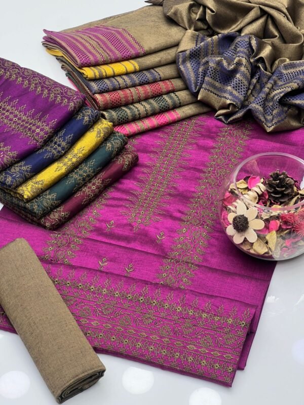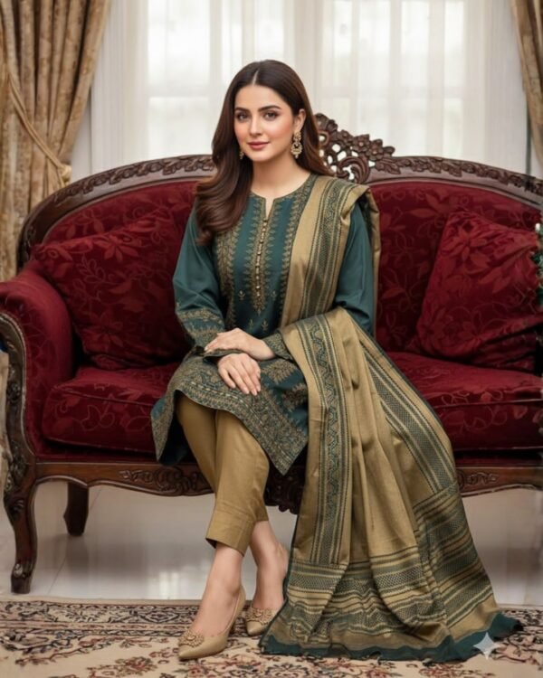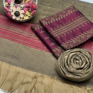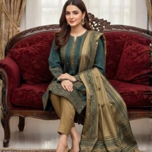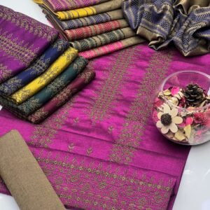 Add a touch of traditional elegance to your wardrobe with this Shemray Sussi 3-piece dress set. The shirt features cross-stitch embroidery with a gala border in Kaliyan style, offering a refined and graceful look. It is paired with a simple Sussi trouser for effortless comfort and style. Completing the ensemble is a Sussi jacquard border shawl, adding sophistication and charm to the outfit. Available in multiple vibrant colors, this set is perfect for festive occasions, family gatherings, or stylish day-to-day wear. Grab your favorite color and elevate your wardrobe!