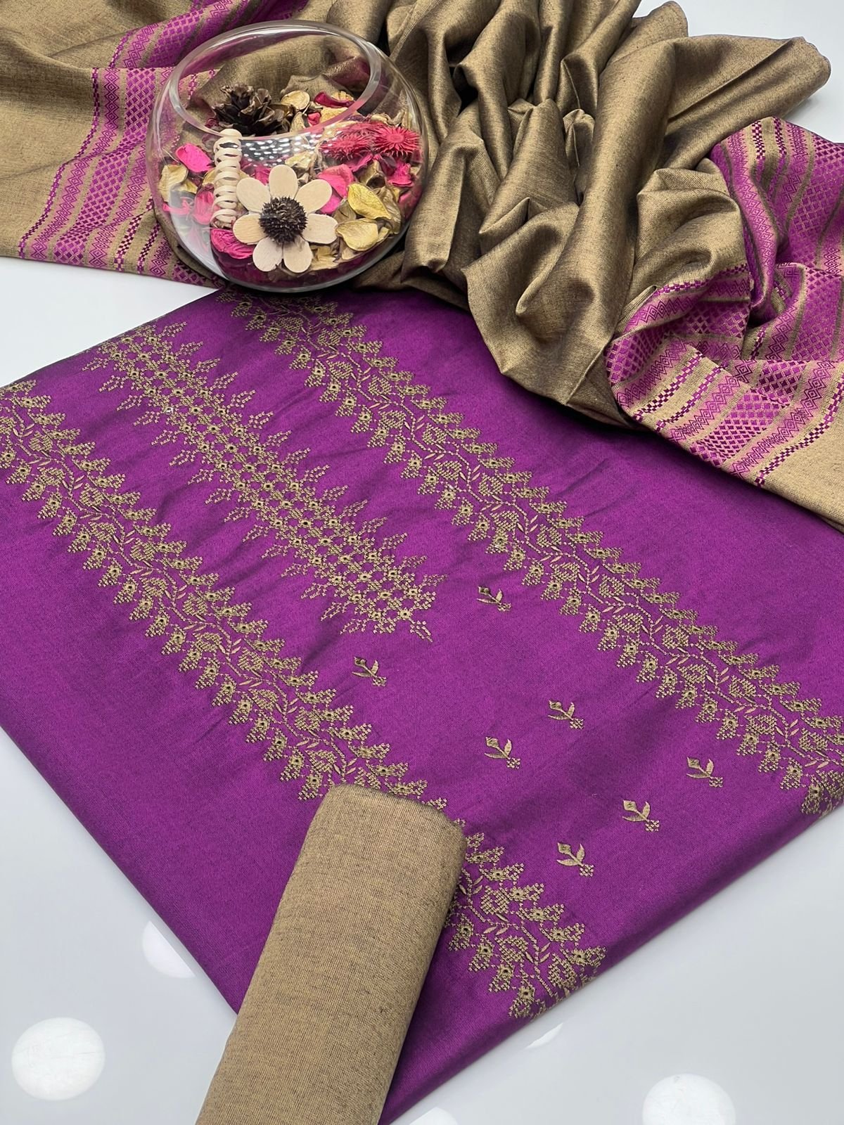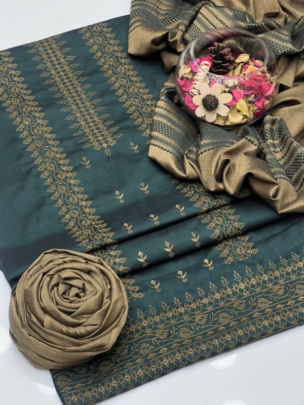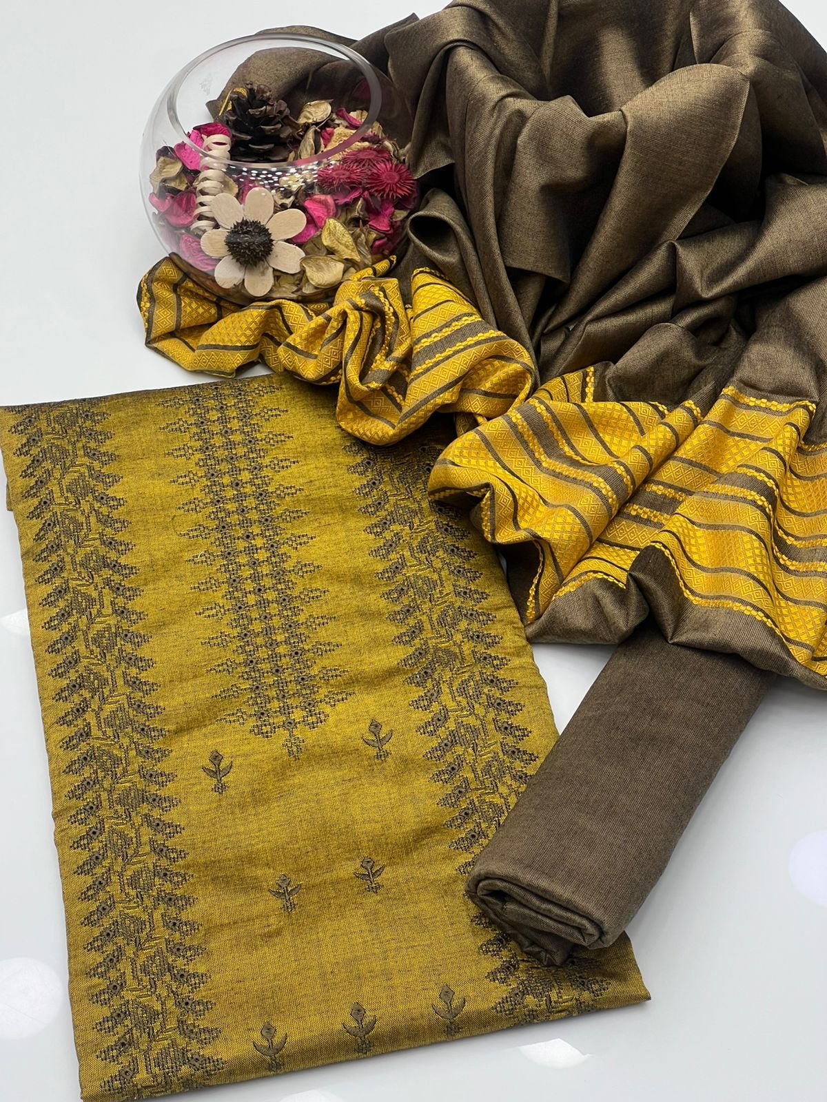 Shemray Sussi Cross-Stitch Gala Border Kaliyan Style Shirt With Simple Sussi Trouser Along With Sussi Jacquard Border Shawl 3Pcs Dress 👗. Grab your fav color😍