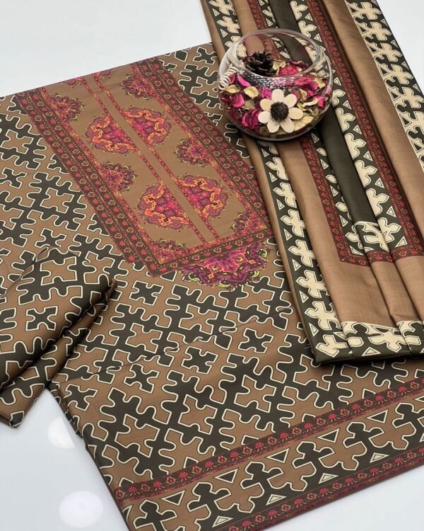 Stay cozy and stylish this winter with the Winter Soft Slub 3-piece dress set. The shirt and trouser are crafted from soft slub fabric with beautiful digital prints, providing comfort without compromising on style. Completing the set is a soft Pashmina digital print shawl, adding warmth and elegance to your ensemble. Perfect for festive gatherings, casual outings, or winter celebrations, this set combines comfort, sophistication, and timeless fashion.