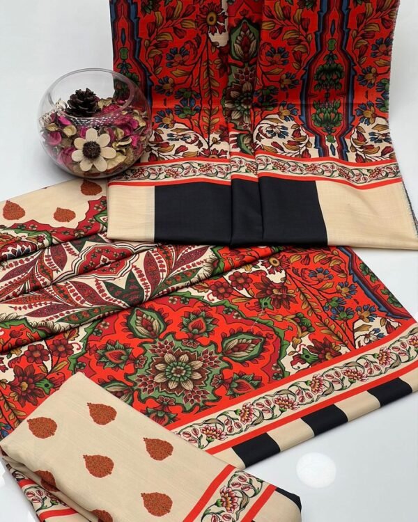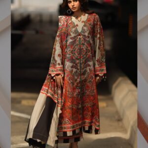 Be the first to review “Winter Soft Slub Digital Print 3PC Dress โ€“ Red & Beige”