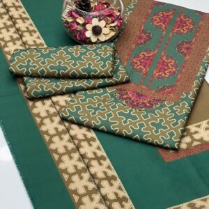 Be the first to review “Winter Soft Slub Digital Print 3PC Dress โ€“ Teal & Brown”
